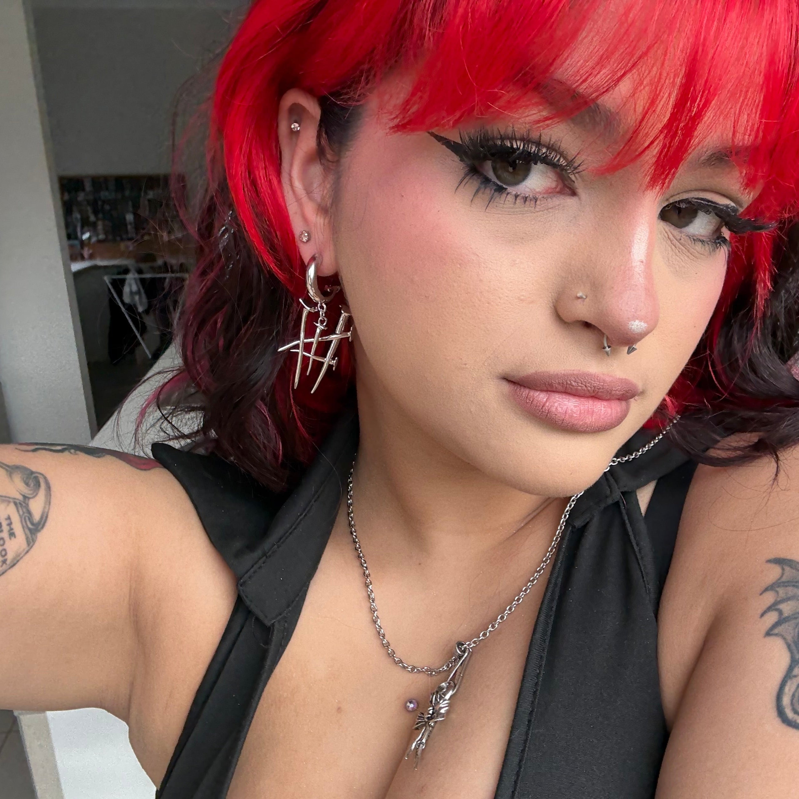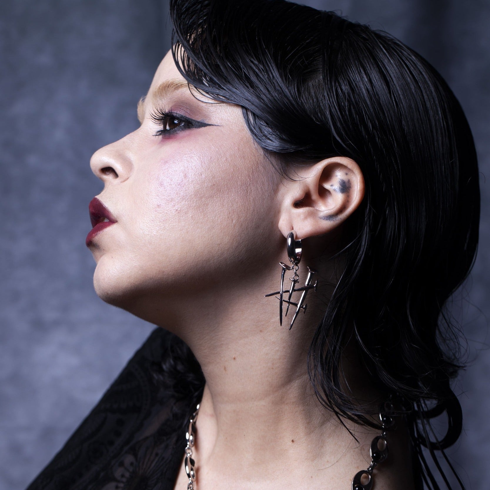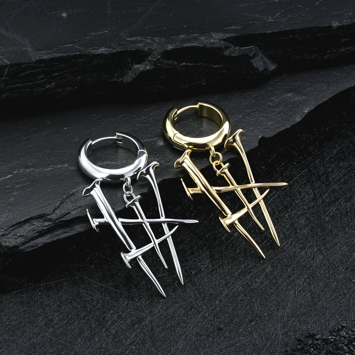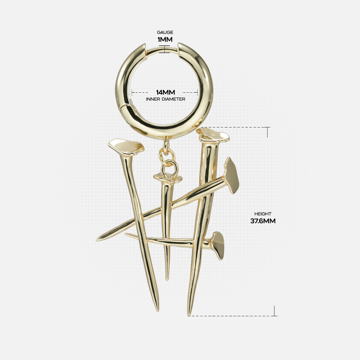 The Ritual Nails Earrings feature a striking nail-inspired design, blending industrial aesthetics with contemporary art for a bold statement. This item is sold as a pair.