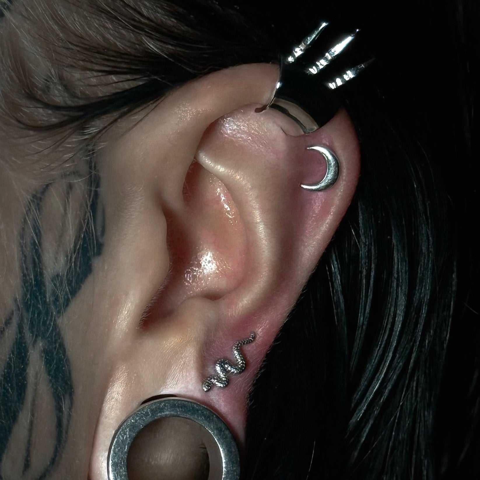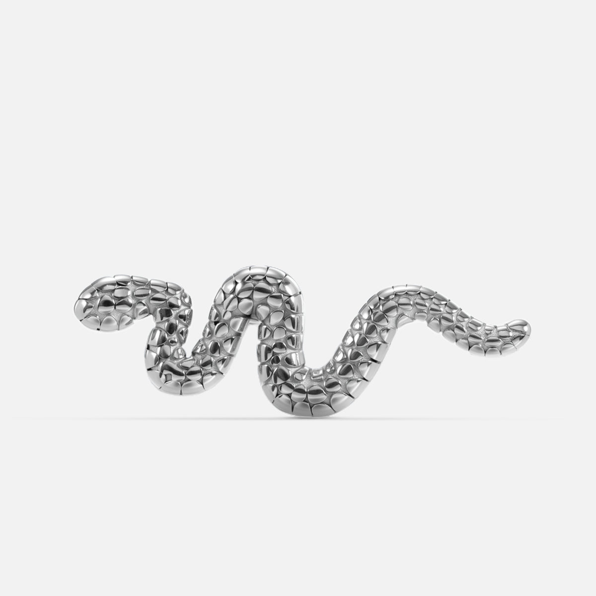 The Serpent-Inspired Flat Back Stud features a sleek, minimalist design with a captivating serpentine form, adding elegance to any piercing. This item is sold separately.