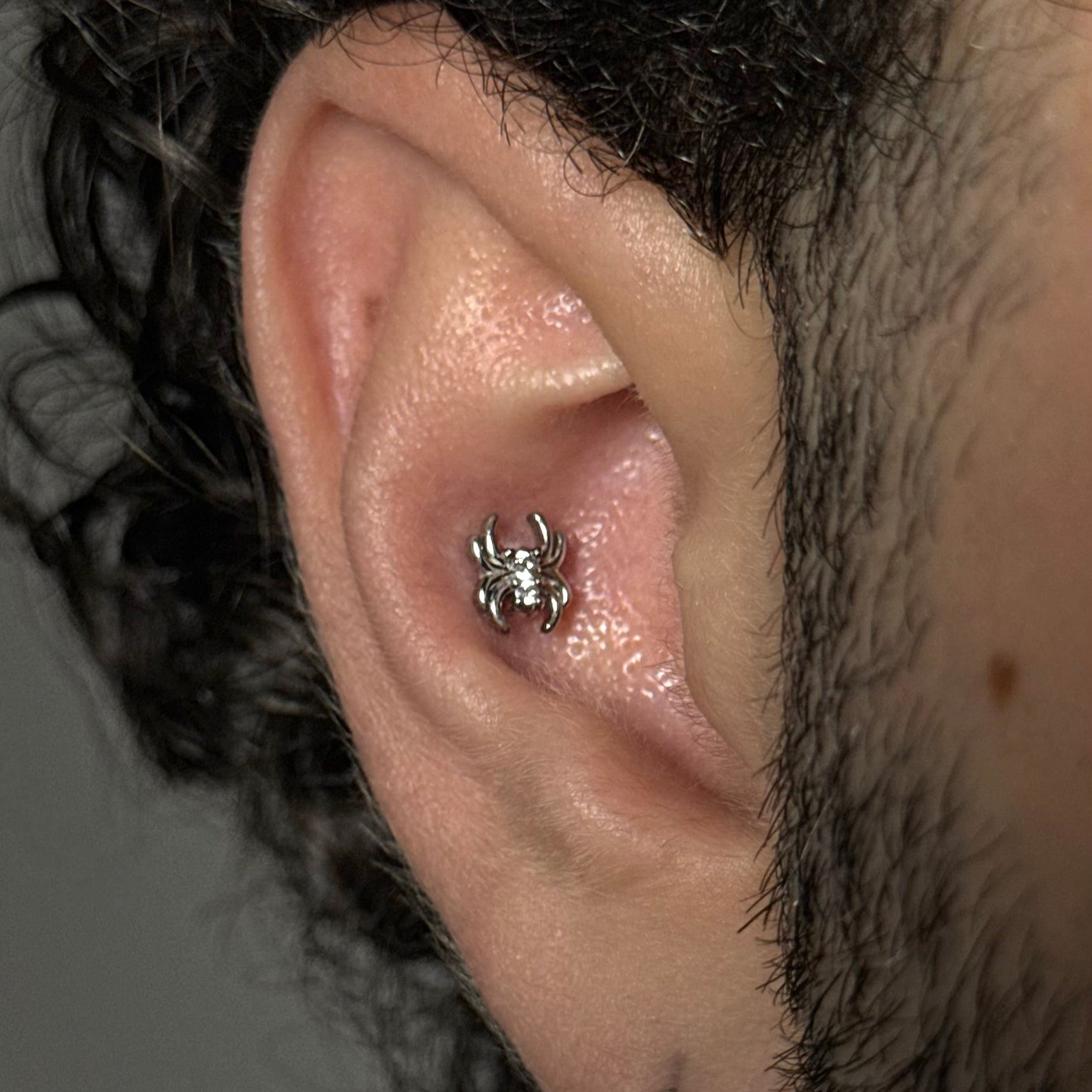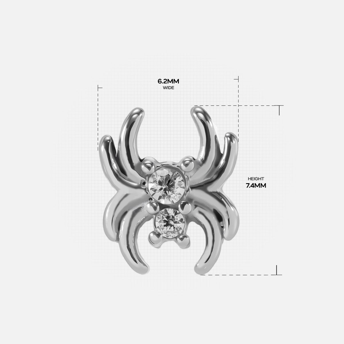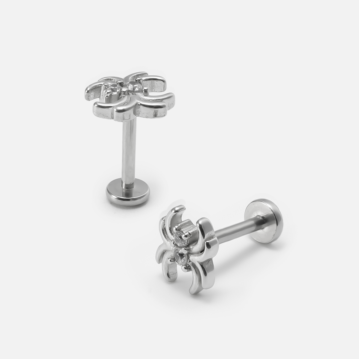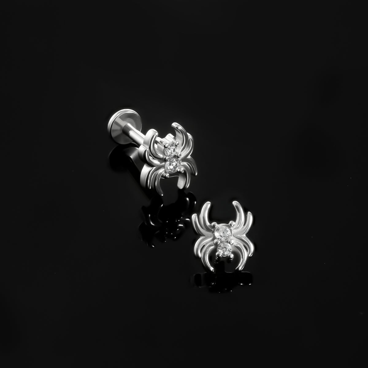 The Spider Flat Back Stud showcases a captivating spider design, merging intricate details with a modern flair, perfect for expressing individuality in piercing styles. This item is sold individually.