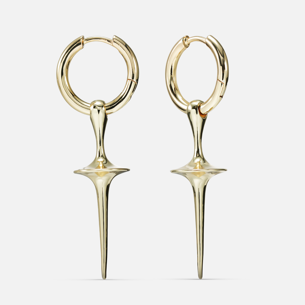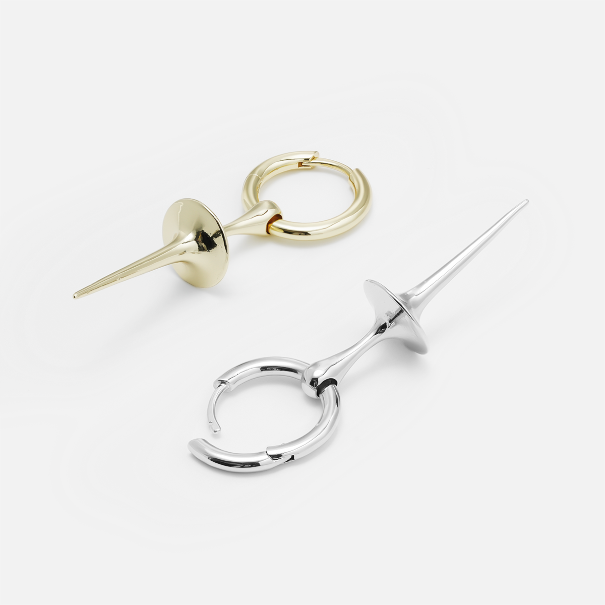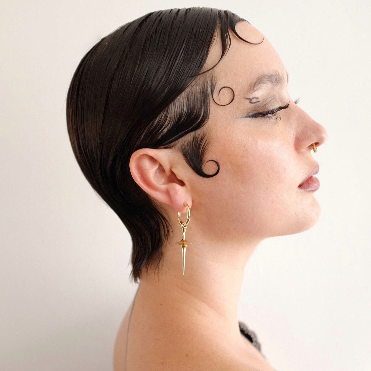 The modern and elegant Stinger Earrings blend abstract art with ancient weaponry, showcasing a unique sense of strength and individuality. This item is sold as a pair.
