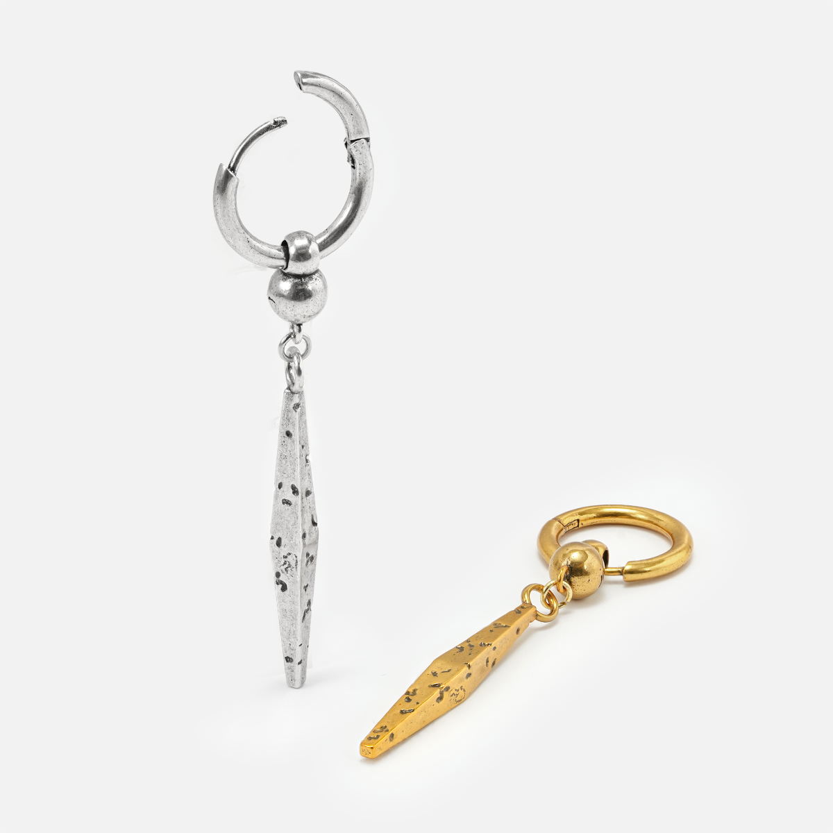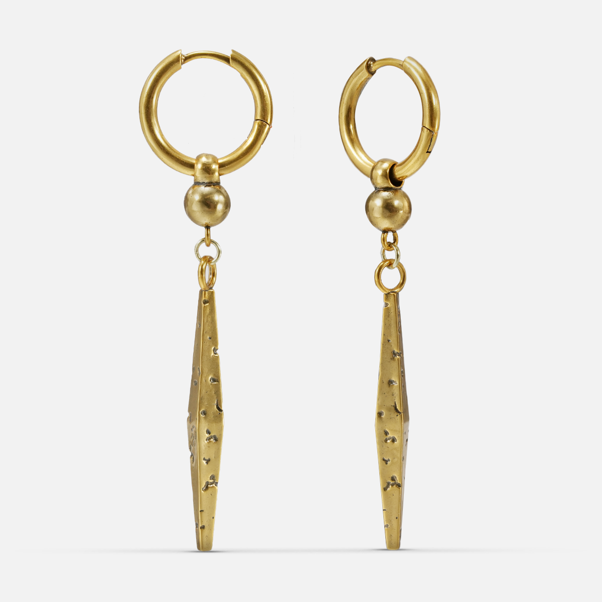 Vanguard Artisan Earring features a striking geometric design that blends strength and craftsmanship, perfect for various styles and showcasing individuality. This item is sold as a pair.