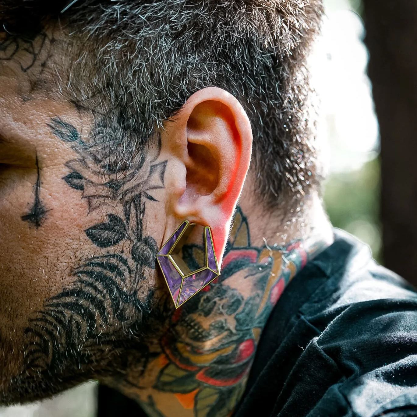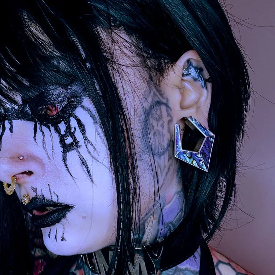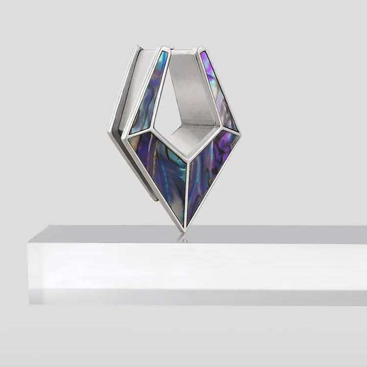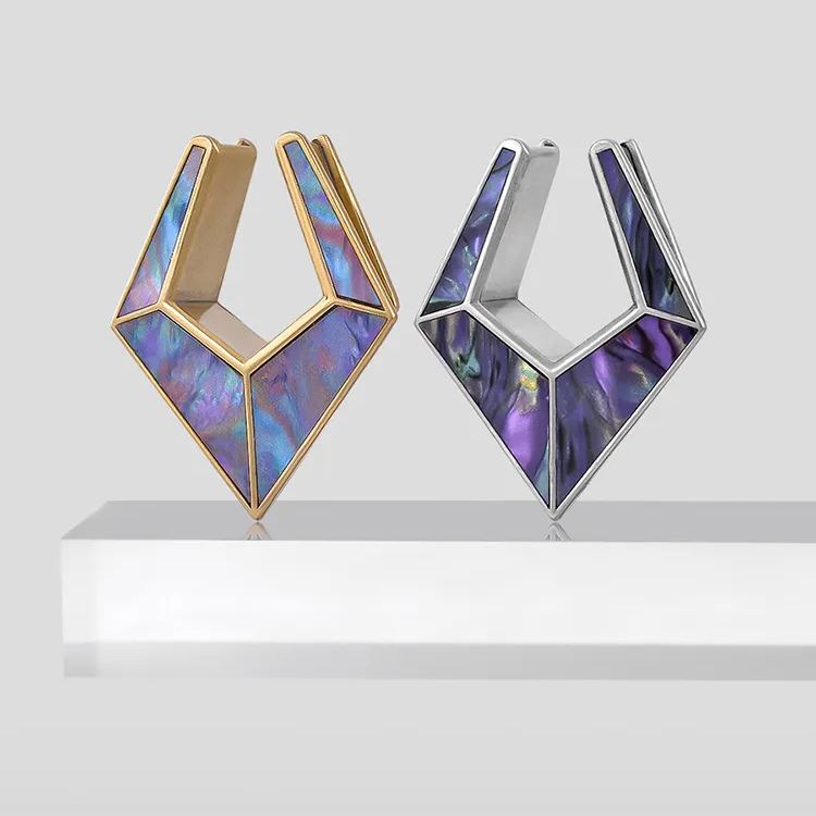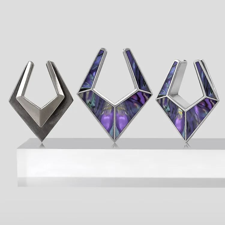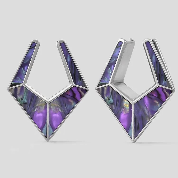 The Violet Prism TUNNELS feature a stunning geometric design with a rich purple hue. Crafted with precision, they exhibit a modern yet timeless aesthetic.This item is sold as a pair.