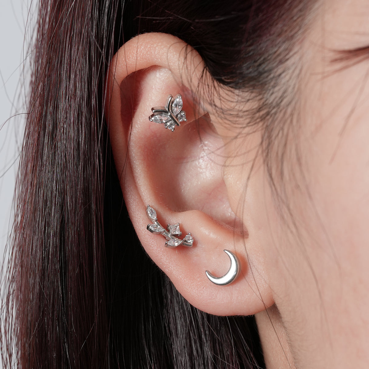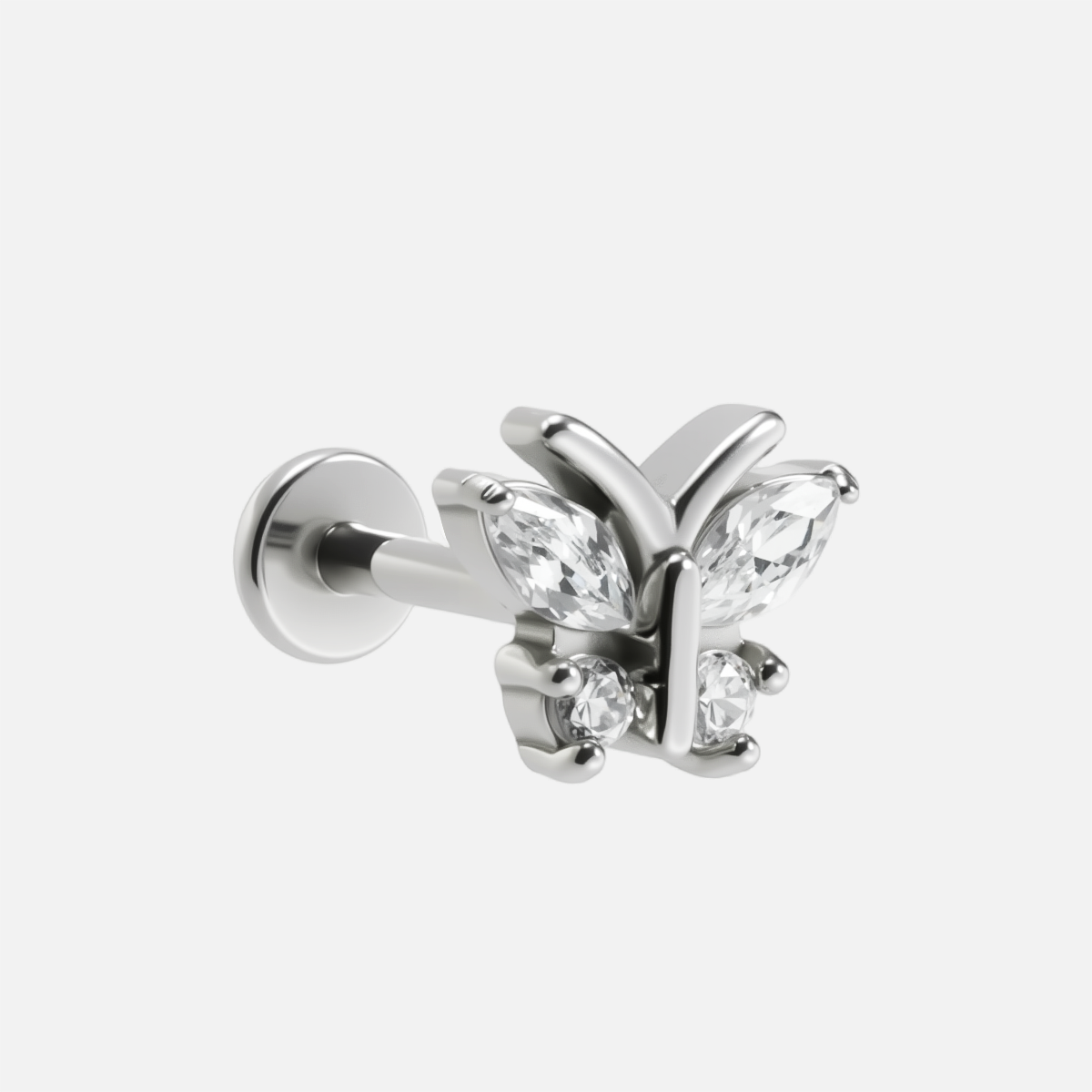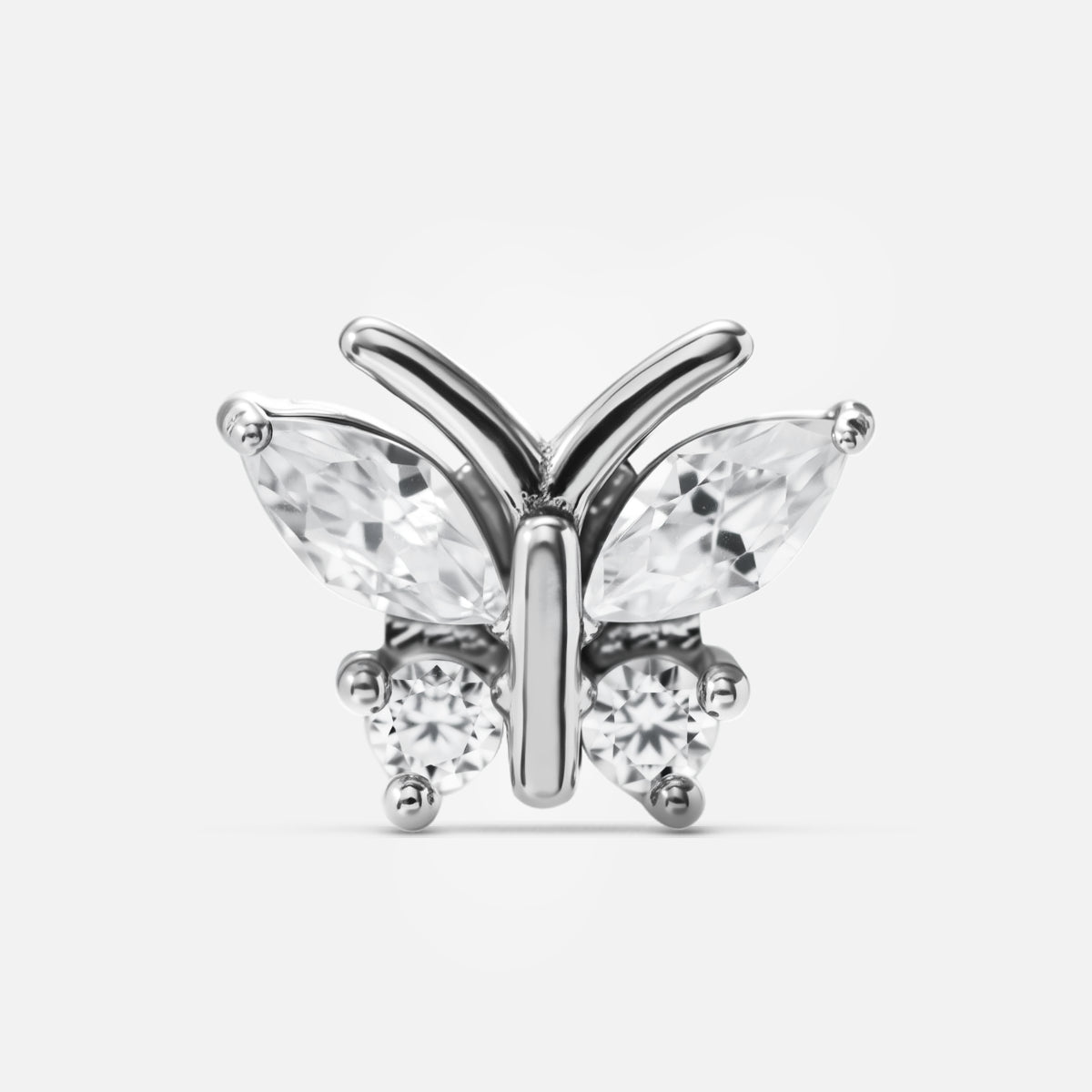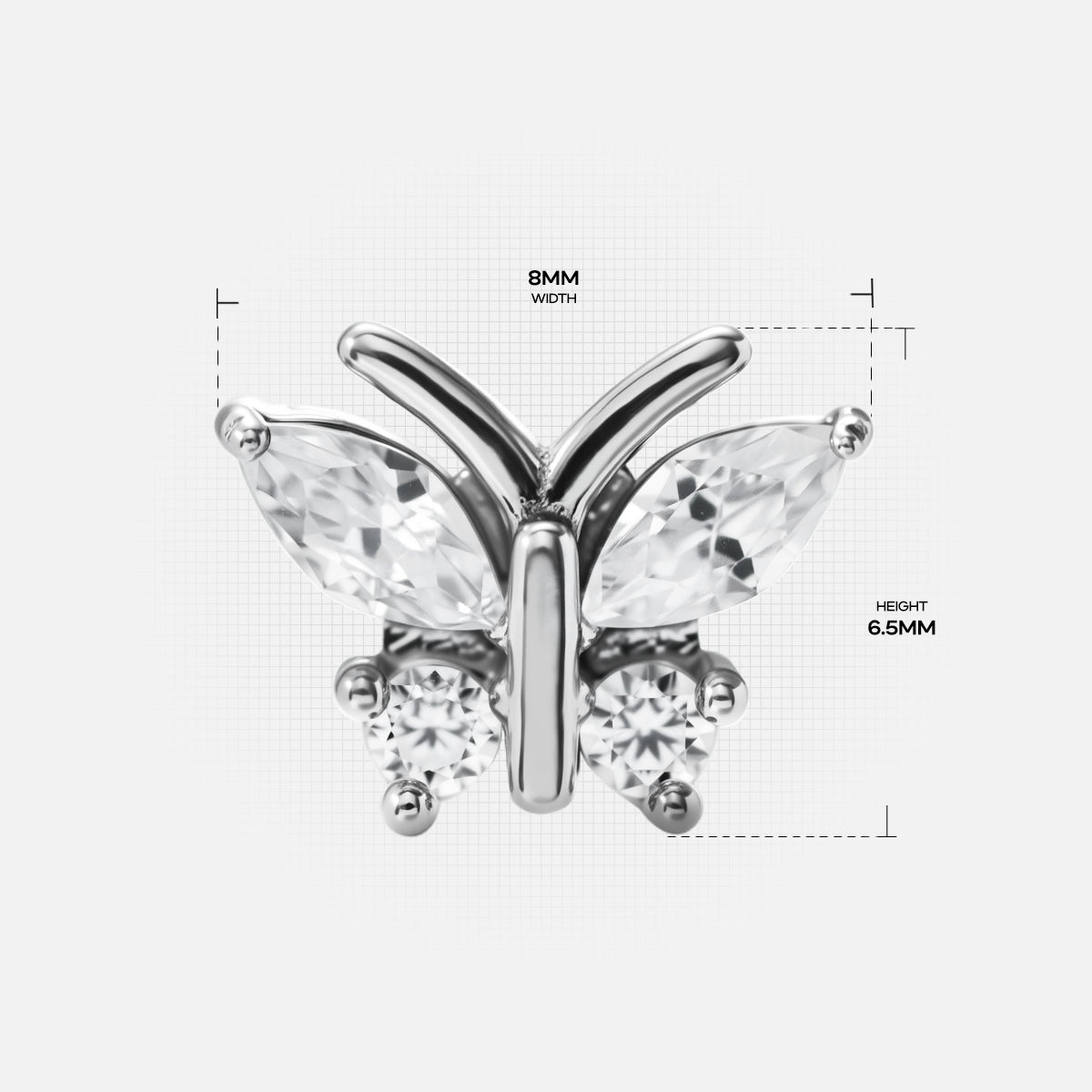This Whimsical Butterfly Stud accessory showcases an elegant butterfly shape, combining delicate lines with sparkling materials to create a dreamlike visual effect. This item is sold separately.